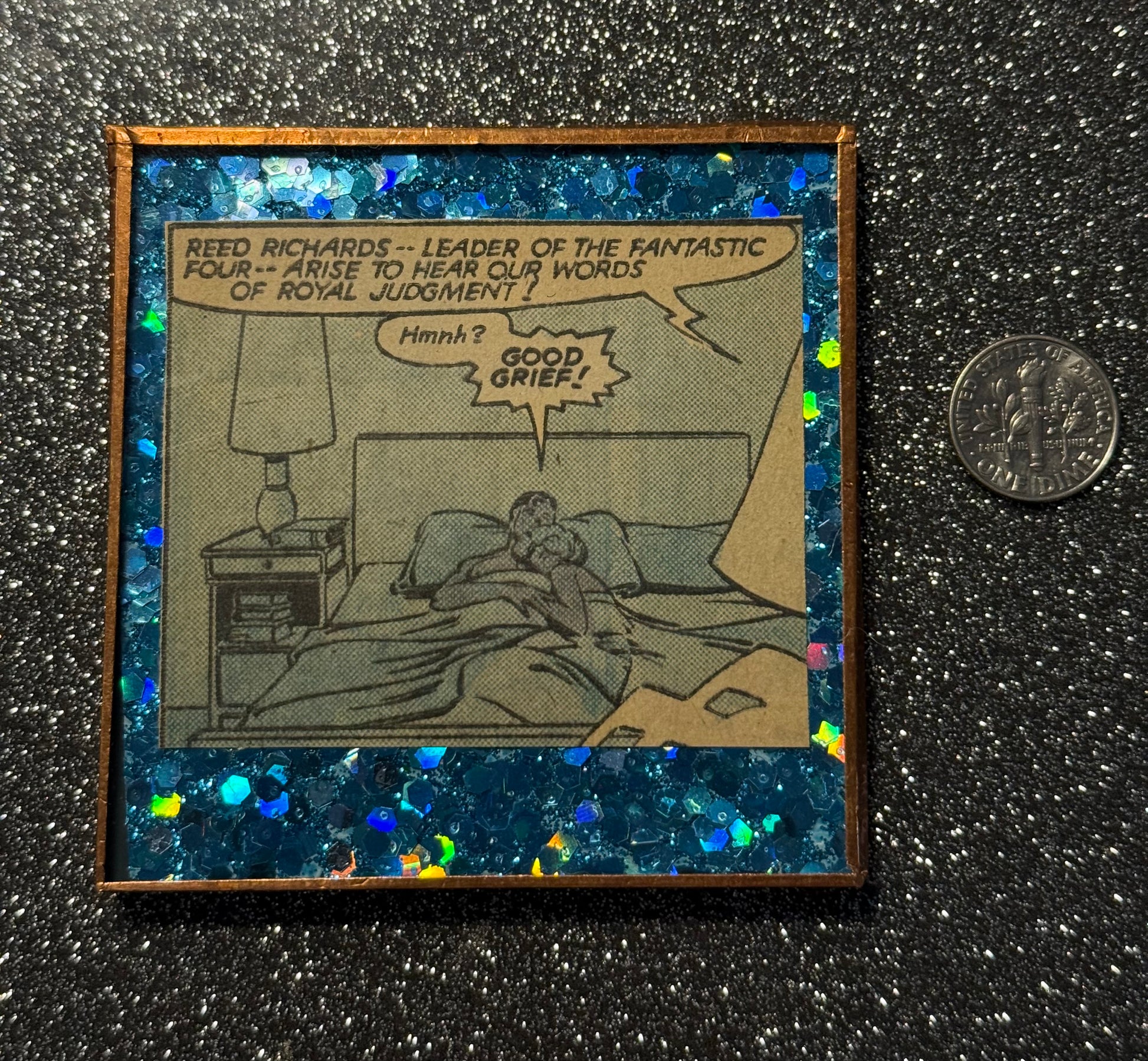 This is a blue glitter mirror "Fantastic Four"-- that ol' Reed Richards-- love this one!