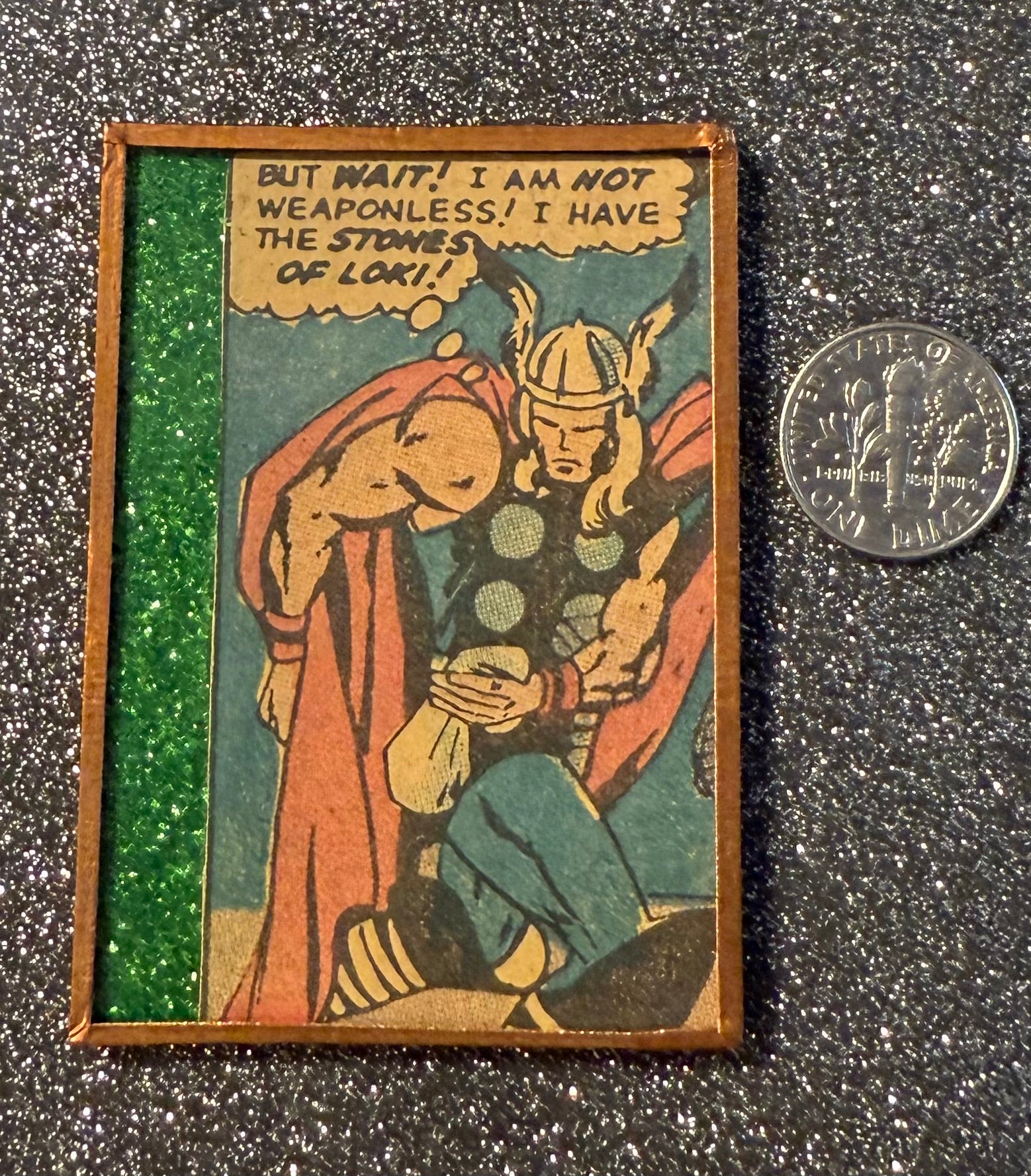Green glitter Thor "stones of Loki!" handmade magnet