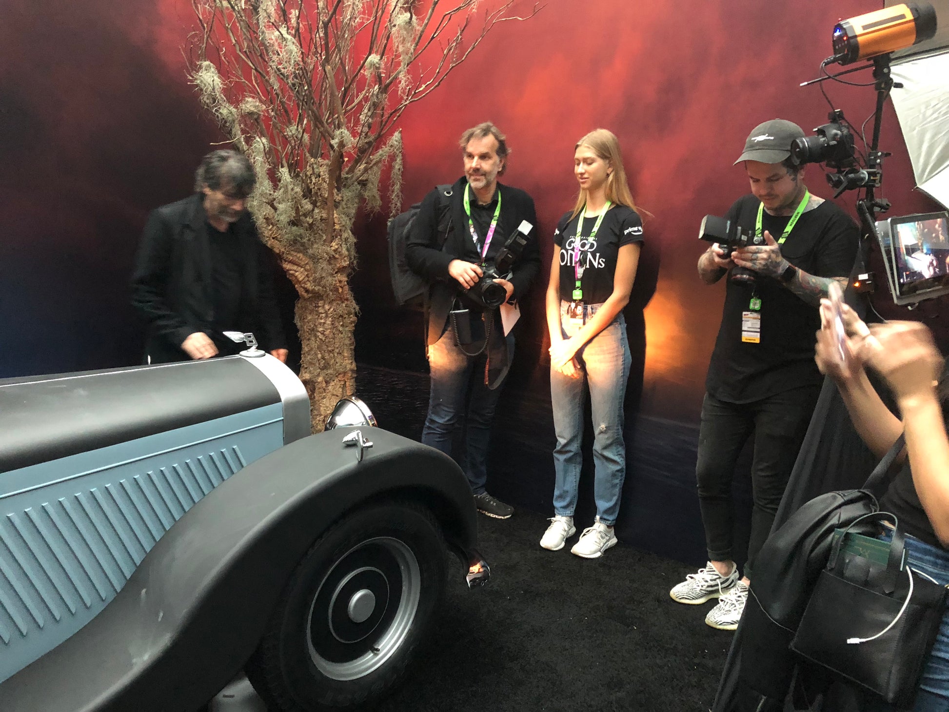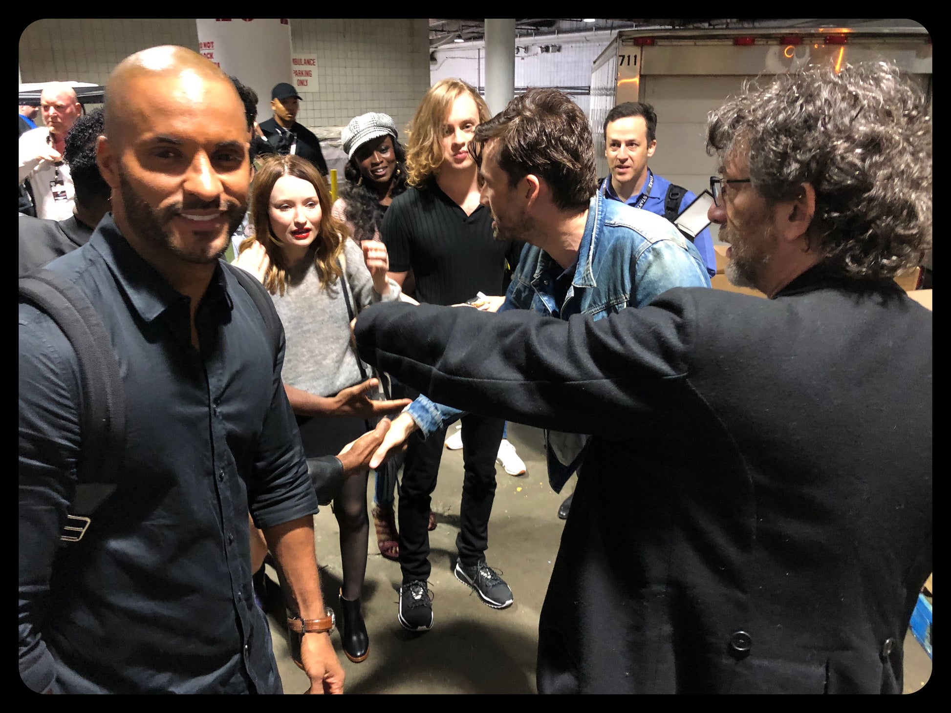 At that convention, we were walking in the backstage area with the whole American Gods cast (aka the GodSquad) to get to a panel and who should be golf carting to another panel, David Tennant our Crowley- it was so fun introducing him to the cast of Gods!