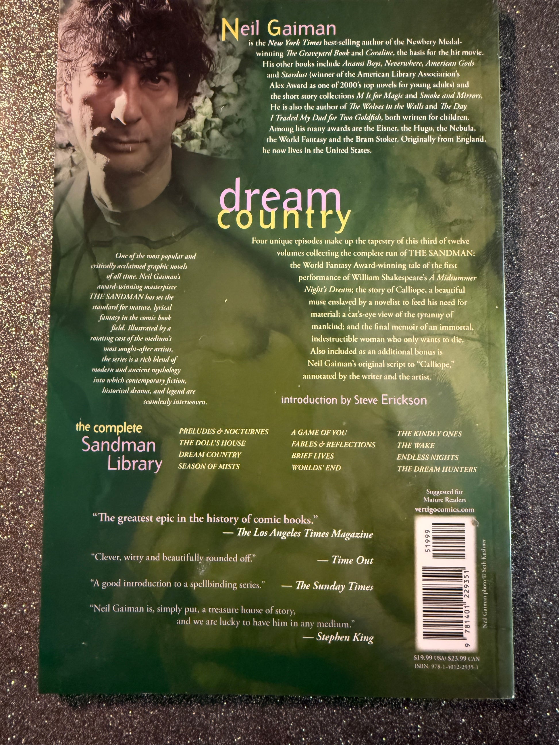 SANDMAN graphic novel #3 DREAM COUNTRY w/an introduction by STEVE ERICKSON